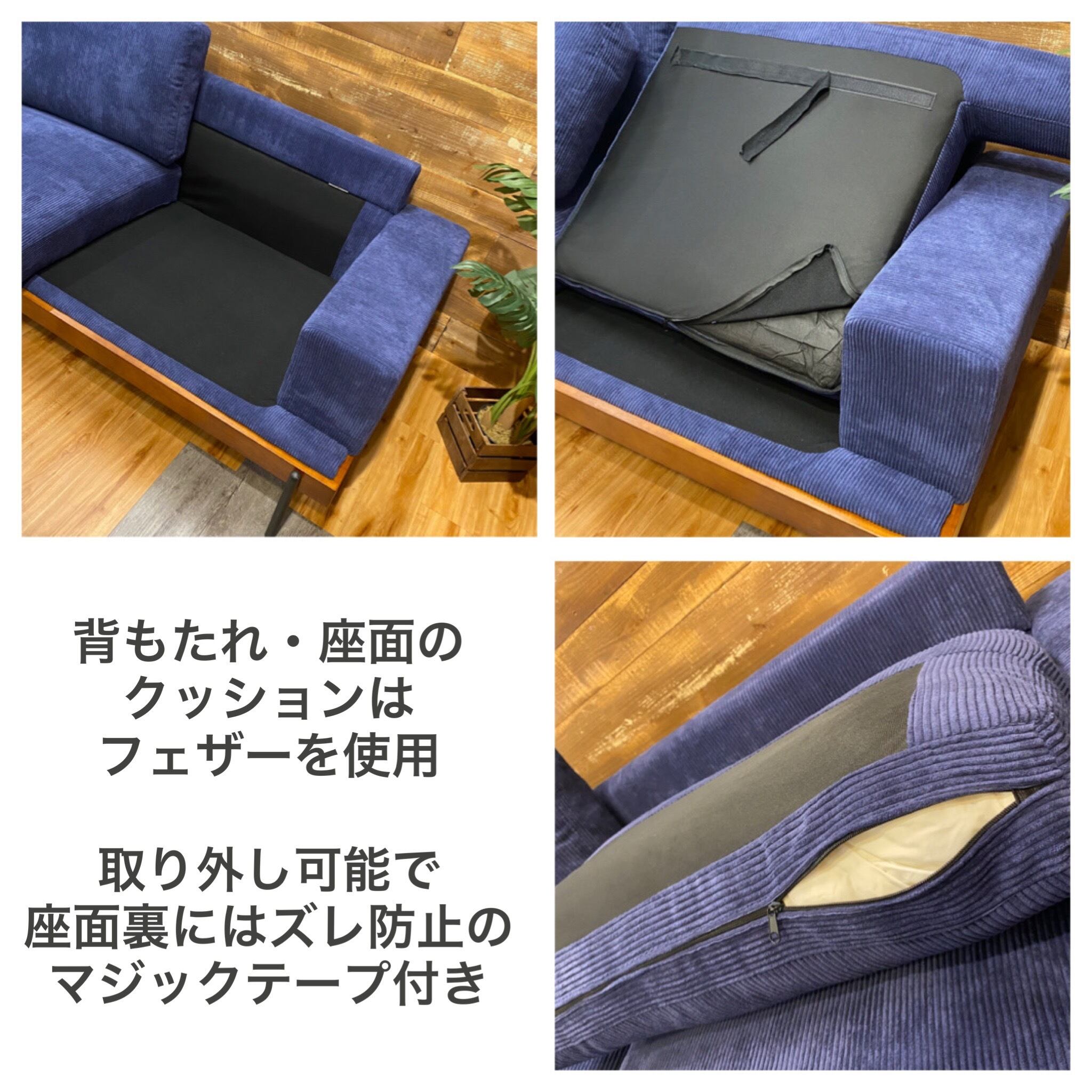 座面にはポケットコイルとフェザーを使用しており、座り心地も抜群です!
